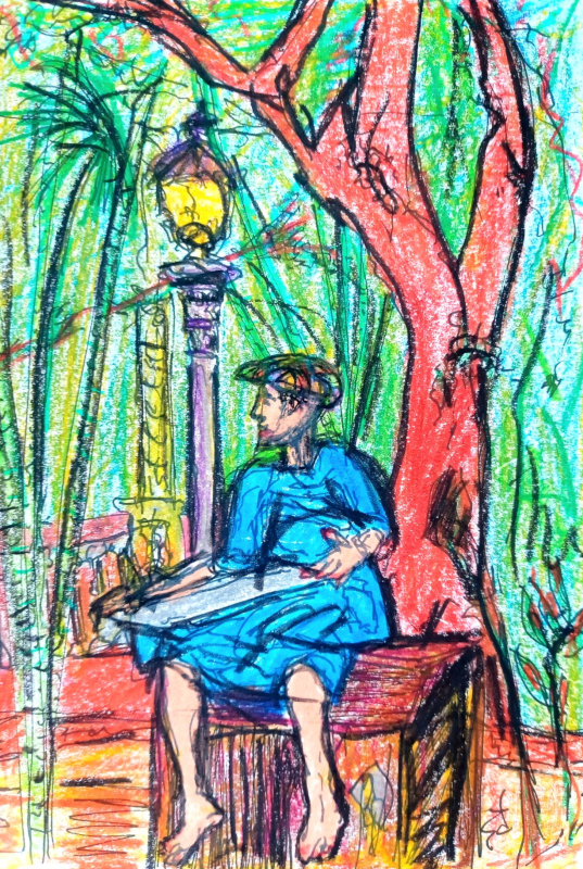 Au total le peintre présente 12 petits formats, techniques mixtes sur papier.